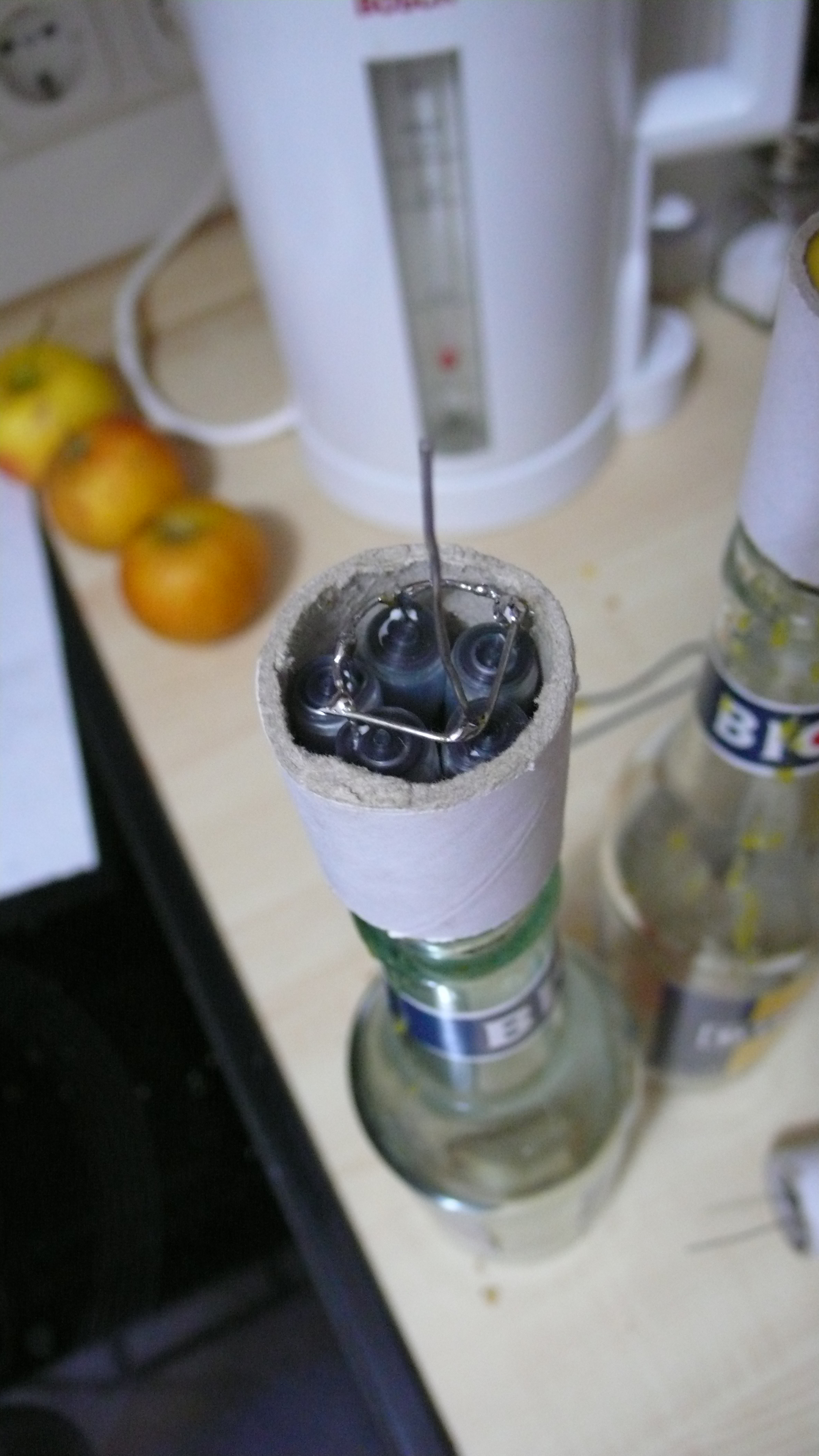 Leere Flaschen bieten sich als Kondensatorbecherhalter an