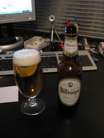 Wie allgemein bekannt (denke ich zumindest) ist Bitburger ein eher herbes Bier. In Anlehnung an den Namen bezeichne ich die Herbe auch gerne als bitter. Vom Fass noch akzeptabel, aus der Glasflasche kaum erträglich; die Plastikflasche ist ein Kompromiss, aber „mögen“ ist auch der falsche Begriff für den Geschmack. Das Bier hinterlässt einen längeren Nachgeschmack, der im Vergleich zur ersten Geschmacksregung etwas angenehmer ist und schlussendlich das Bier doch an ein Pils erinnern lässt.