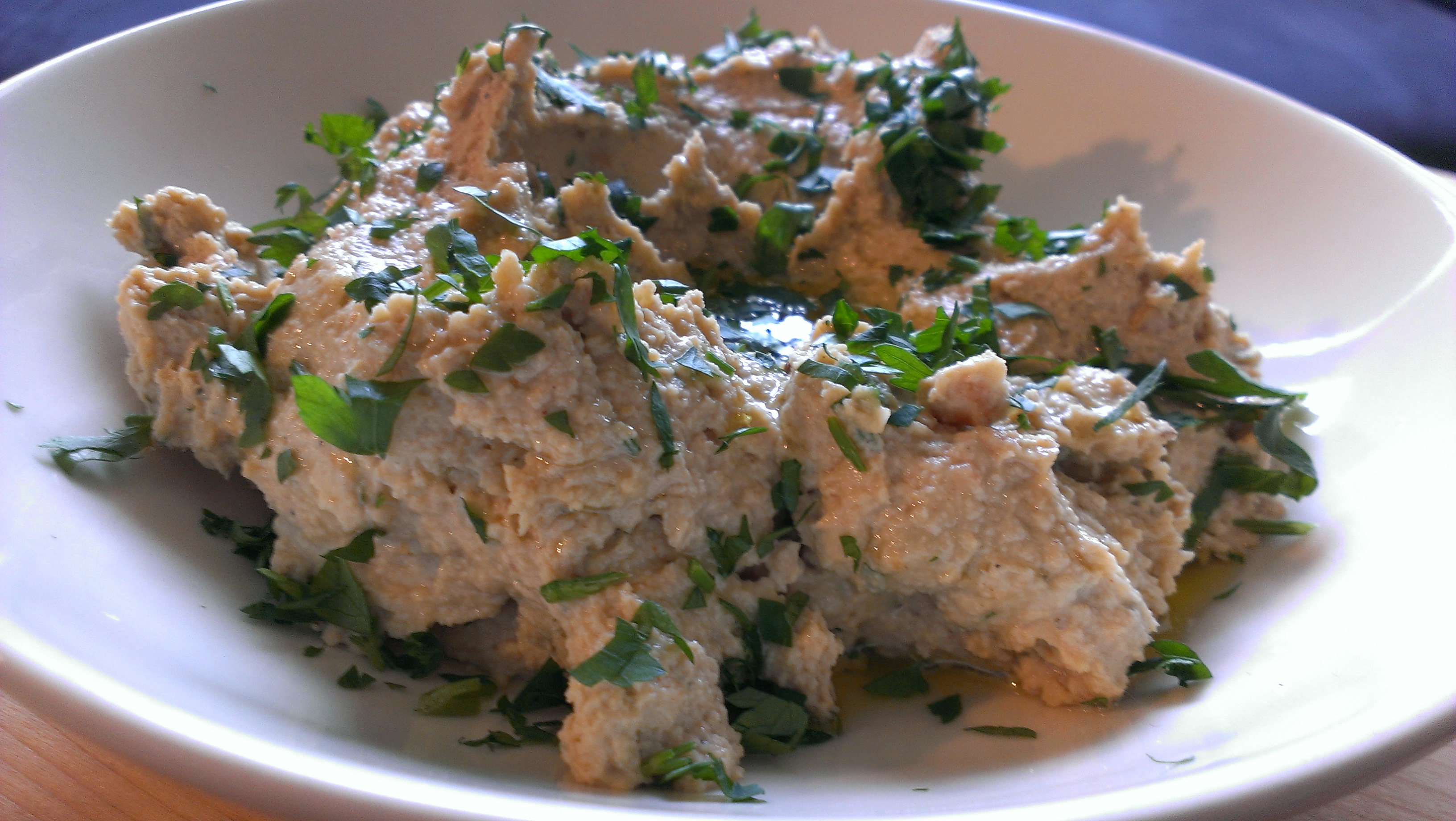 Das nervigste an der ganzen Zubereitung ist das Präparieren der Kichererbsen. Die blöden Dinger haben nämlich zwei unansehnliche Eigenschaften: Einmal enthalten sie Saponin – was sehr bitter ist – und Phasin – was überaus giftig ist, und zweiterlich haben sie ein Silberhäutchen, das sie umfängt und abgefummelt sein will. Trockene Kichererbsen werden mit einer großzügigen Menge Wasser über Nacht eingeweicht. Das Wasser einmal wechseln. Am nächsten Tag in wiederum frischem Wasser etwa eine Stunde kochen, bis die Erbsen weich sind. Okay, alles bis dahin tue ich genau nie. Ich kaufe sie aus der Dose. Dose aufmachen, abgießen, in frischem Wasser kurz aufkochen. Abgießen, aber das Kochwasser auffangen. Dann unter kaltem Wasser in einem Durchschlag abschrecken und Silberhäutchen abpulen. Wenn wir das hinter uns haben, passiert die Restzubereitung in kürzester Zeit.