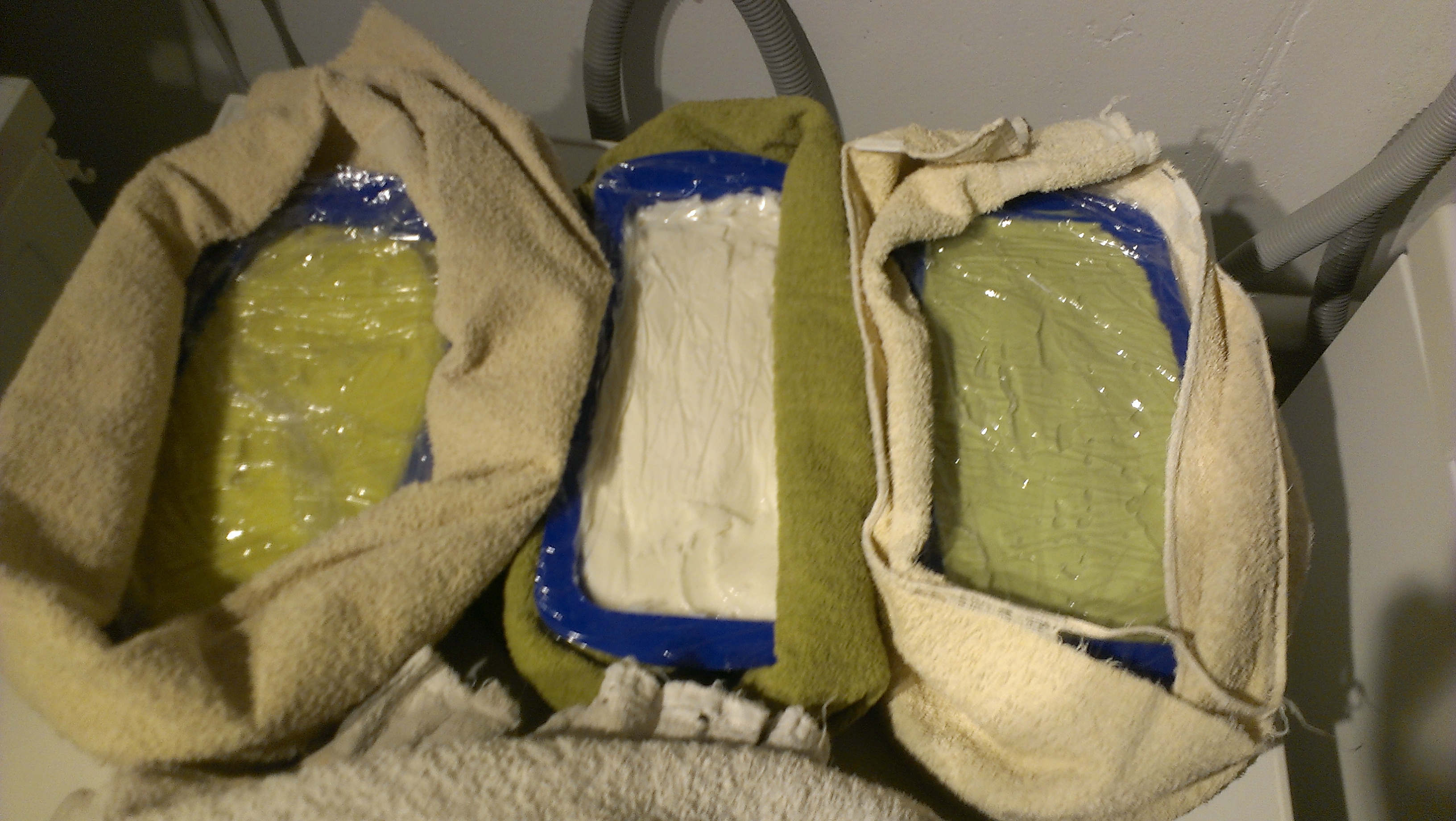 Ich wollte auf jeden Fall eine klassische Alepposeife machen, weil ich sowohl die Seifen als auch die Tradition dahinter sehr faszinierend finde.Traditionelle Alepposeife hat zwischen 15 und 50% Lorbeeröl-Anteil, wenn ich das richtig verstanden habe. Ich habe mich – nicht zuletzt auf Grund des doch recht saftigen Preises – für 20% entschieden. Selbst wenn der Duft noch mit der Lagerung abnimmt – das ist mehr als genug. Ich werde in Zukunft den Anteil auf jeden Fall auf 15% senken .. der ganze Keller riecht nach Lorbeer.