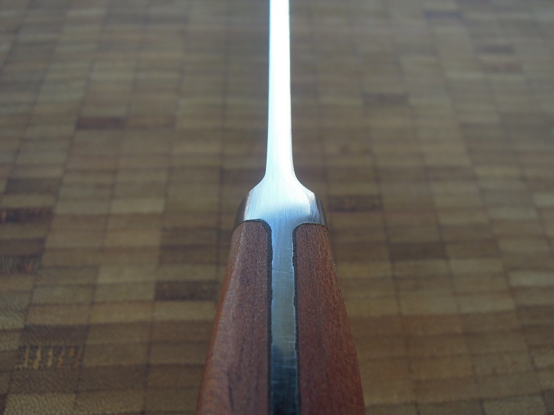 Zwar ist die Klinge am Rücken durchaus solide, hinter der Wate ist das Messer aber ausnehmend dünn. Entgegen den Behauptungen einiger, das Messer sei zu dick, muss man festhalten, dass die Balance exzellent getroffen ist: Die Klinge ist schneidfreudig aber nicht fragil.
