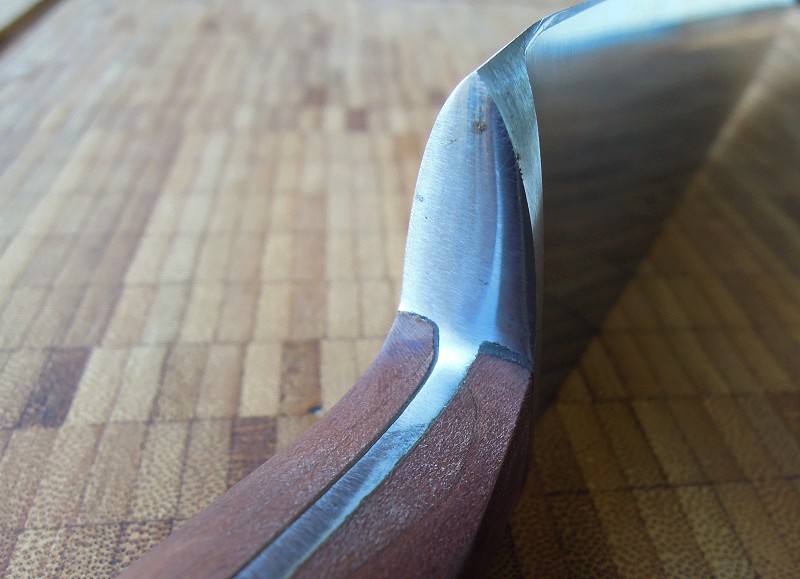 Lediglich den Kropf würde ich mir wegwünschen. Auch wenn er im Gebrauch durch die saubere Verarbeitung, Rundung und das Brechen der kritischen Kanten nicht so störend wirkt, wie bei anderen Messers ähnlicher Bauart.
