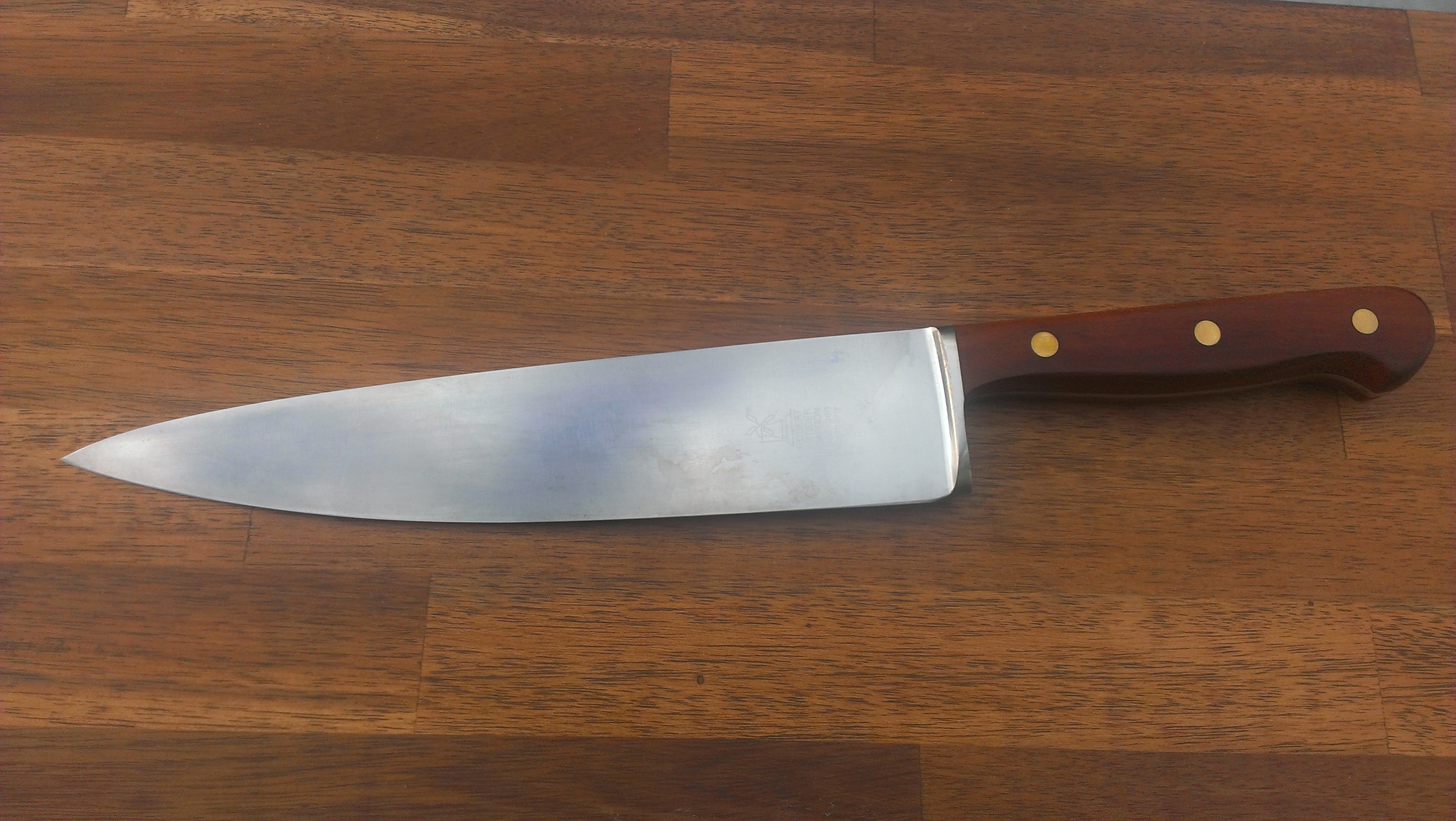 Bisher wurde ich auf dreifache Weise davon abgehalten, mich näher mit dem Herder 1922 Kochmesser zu befassen: Erstens die Griffproblematik, mit der man oft konfrontiert wird, wenn man sich auf Herder-Produkte einlässt. Zweitens mag ich keine Messer mit Kropf, den ich als störend und unschön empfinde. Und dann ist da noch ein Freund, der ein solches Exemplar besitzt und nicht wirklich zufrieden damit ist und meint, dass seine japanischen Messer alle besser schneiden.