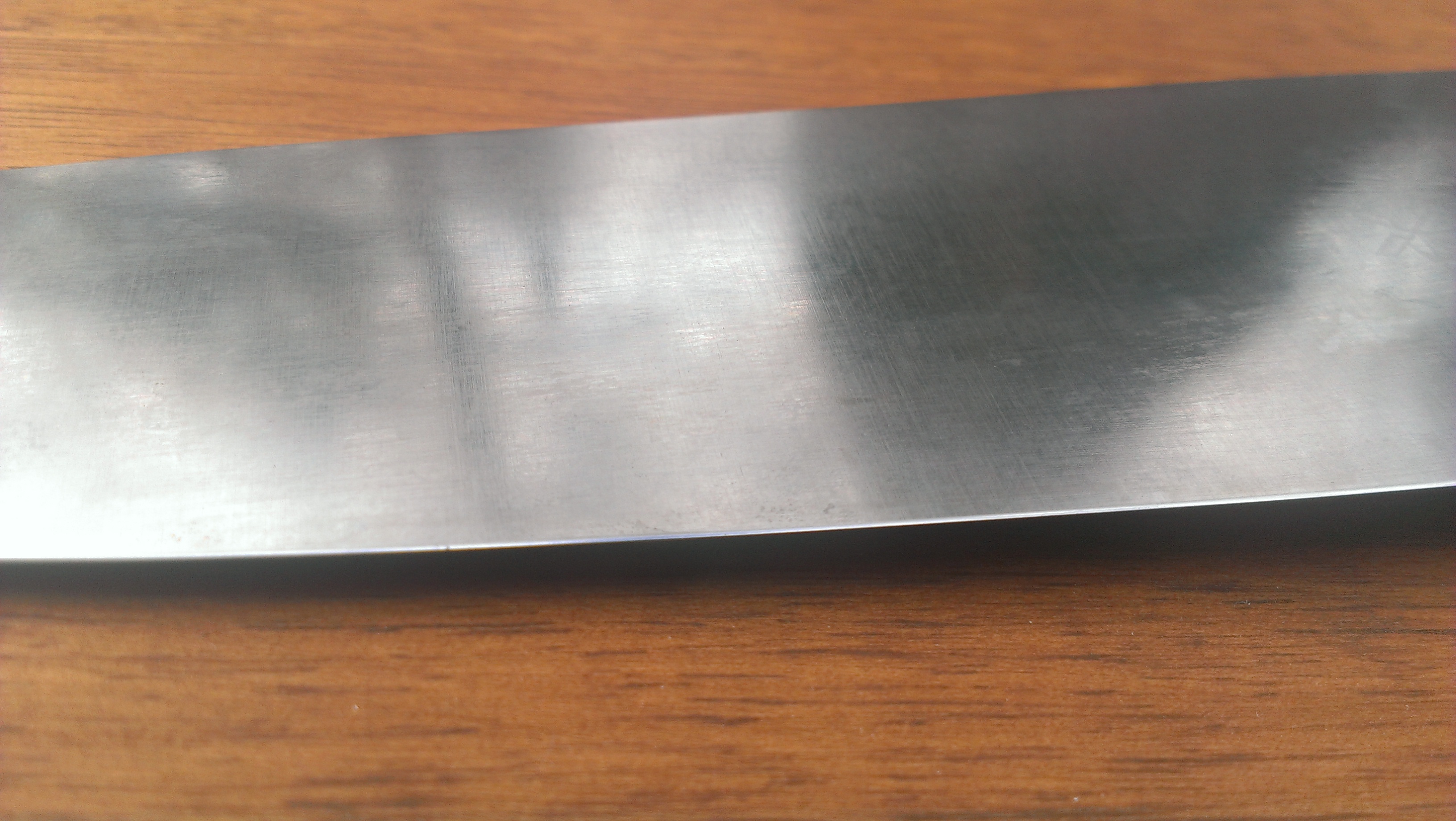 Der Kohlenstoffstahl erfüllt ebenfalls meine Erwartungen. Mit meinem Chosera 1000 und anschließenden entsprechenden Finishsteinen konnte ich das Messer im Nu auf haarspalterische Schärfe bringen. Die Standzeit hat ebenfalls nicht enttäuscht. Nach der Zubereitung min. 10 Gemüse-lastiger und schneidintensiver Gerichte (jeweils 2 Portionen) war die Schärfe immer noch ausreichend zur Armhaarrasur.