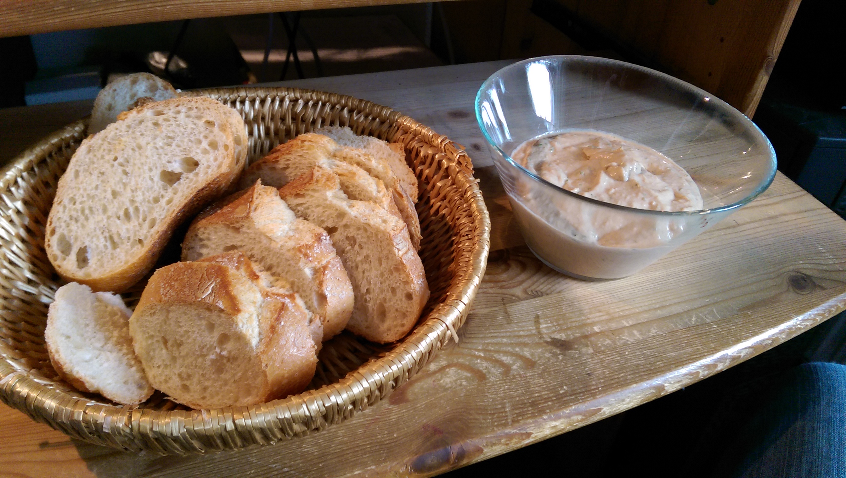 Seit zwei meiner Freunde aus dem Portugal-Urlaub Paté de Atum, also Thunfisch-Pâté, mitgebracht haben, zog mich eine unsichtbare Kraft immer wieder in die Küche, um mich wieder und wieder an der Herstellung zu probieren. Das Internet war leider wenig Hilfe, die Rezepte laufen immer auf „mische Thunfisch, Zwiebeln und Mayonnaise“ raus. Danke, so weit war ich auch schon. Jetzt bin ich endlich bei einem Rezept angekommen, das ich guten Gewissens an die Wand nageln kann – was dadurch bewiesen wird, dass das Pâté ständig auf mysteriöse Weise aus dem Kühlschrank verschwindet…