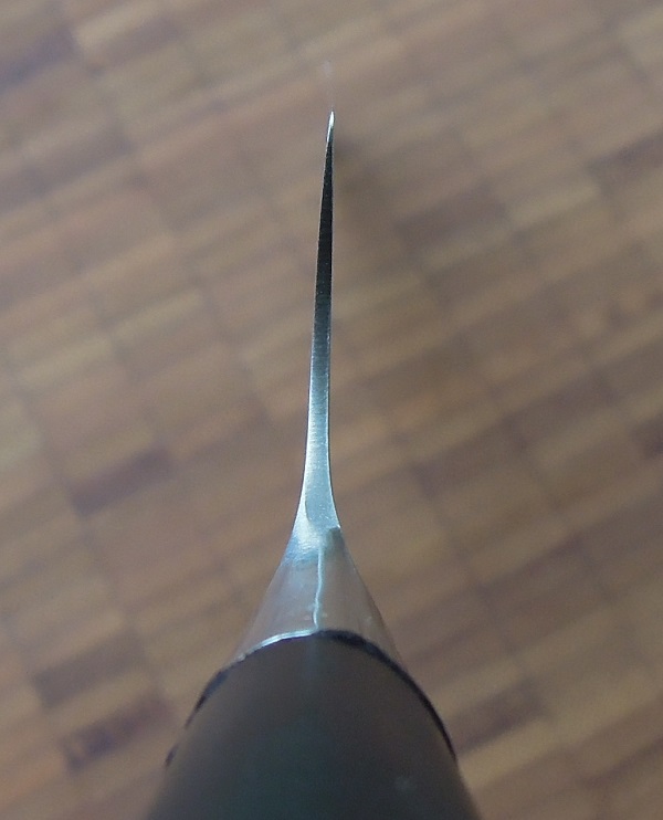 Das Pro M hätte das Potential zum absoluten Ausnahmemesser. So, wie es ist, ist es schon fraglos die große Empfehlung im Preisbereich bis 100€ – wenn es jetzt noch einen guten Griff hätte, wäre der Coup perfekt. Die Unsauberkeiten lassen sich mit ein bisschen Schleifpapier problemlos beseitigen, die Griffform allerdings bleibt natürlich. Bittebitte, Kanetsugu: Macht eine Serie mit normalen japanischen Alleweltgriffen an diesen Messern! Achso, und wenn ihr dabei seid .. ich will sehen, was Ihr mit Sandvik-Stahl machen könntet…