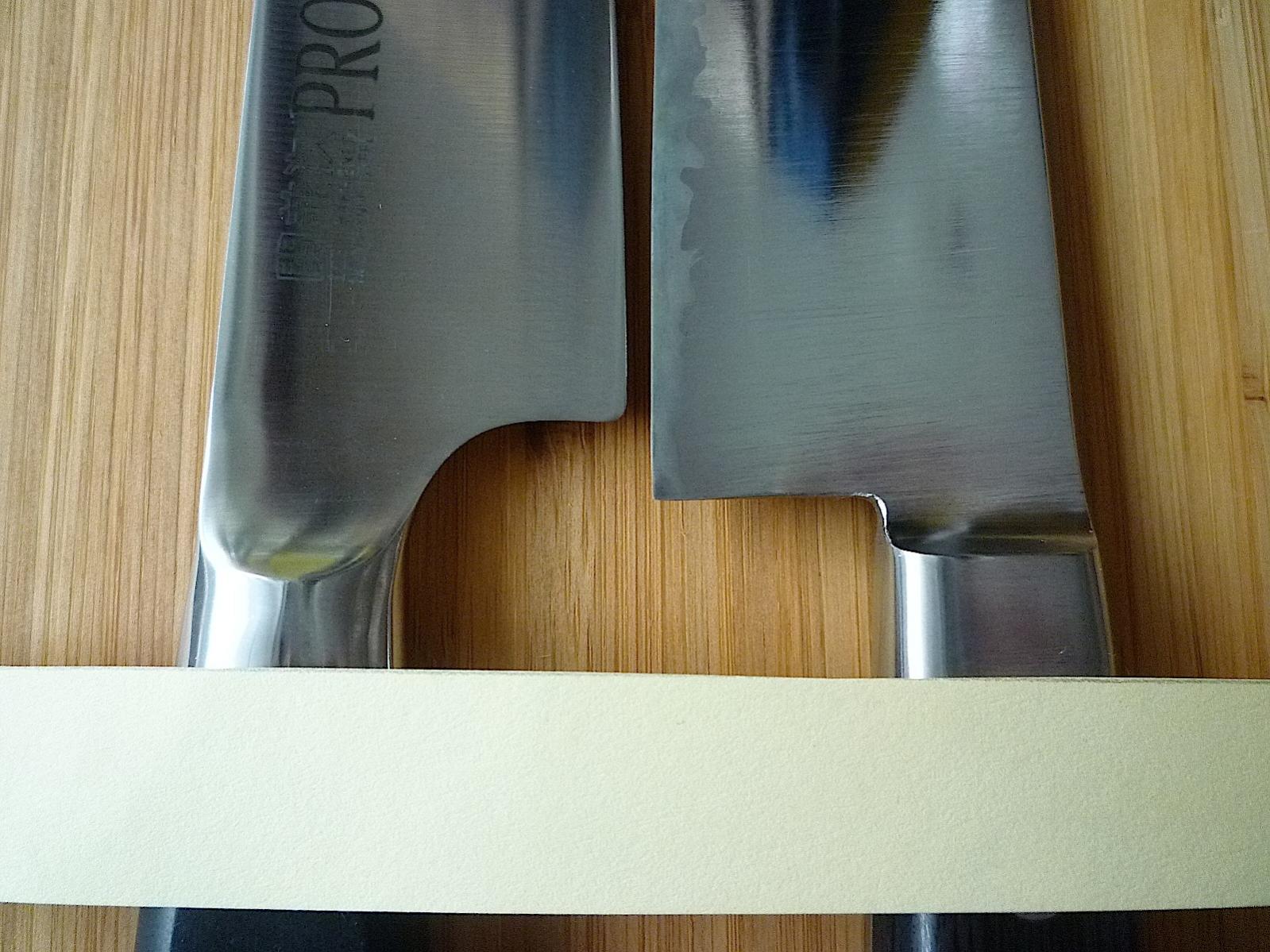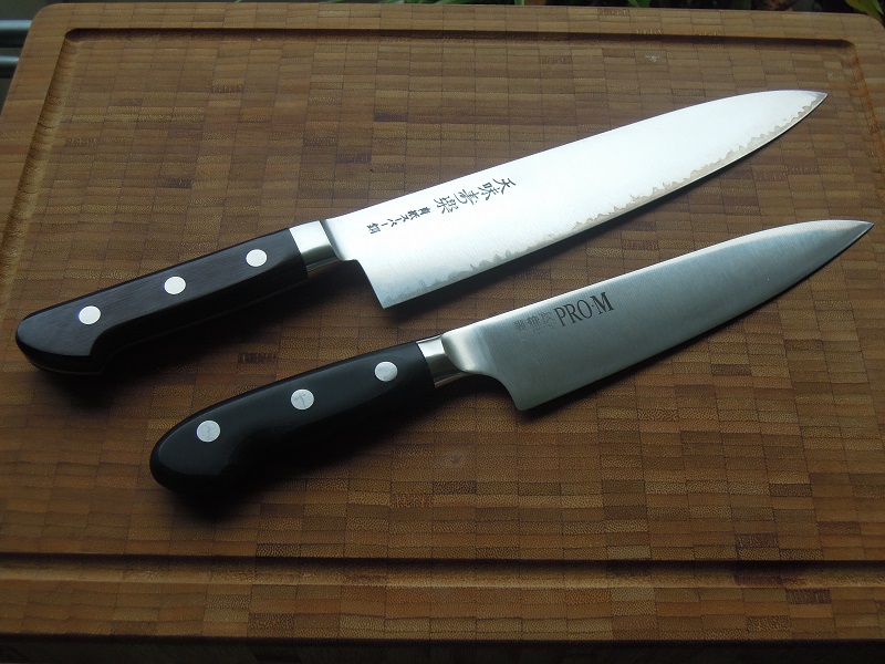 Im Vergleich mit dem 240mm Hiromoto AS Gyuto wirkt das kleine Pro M schon leicht verloren: