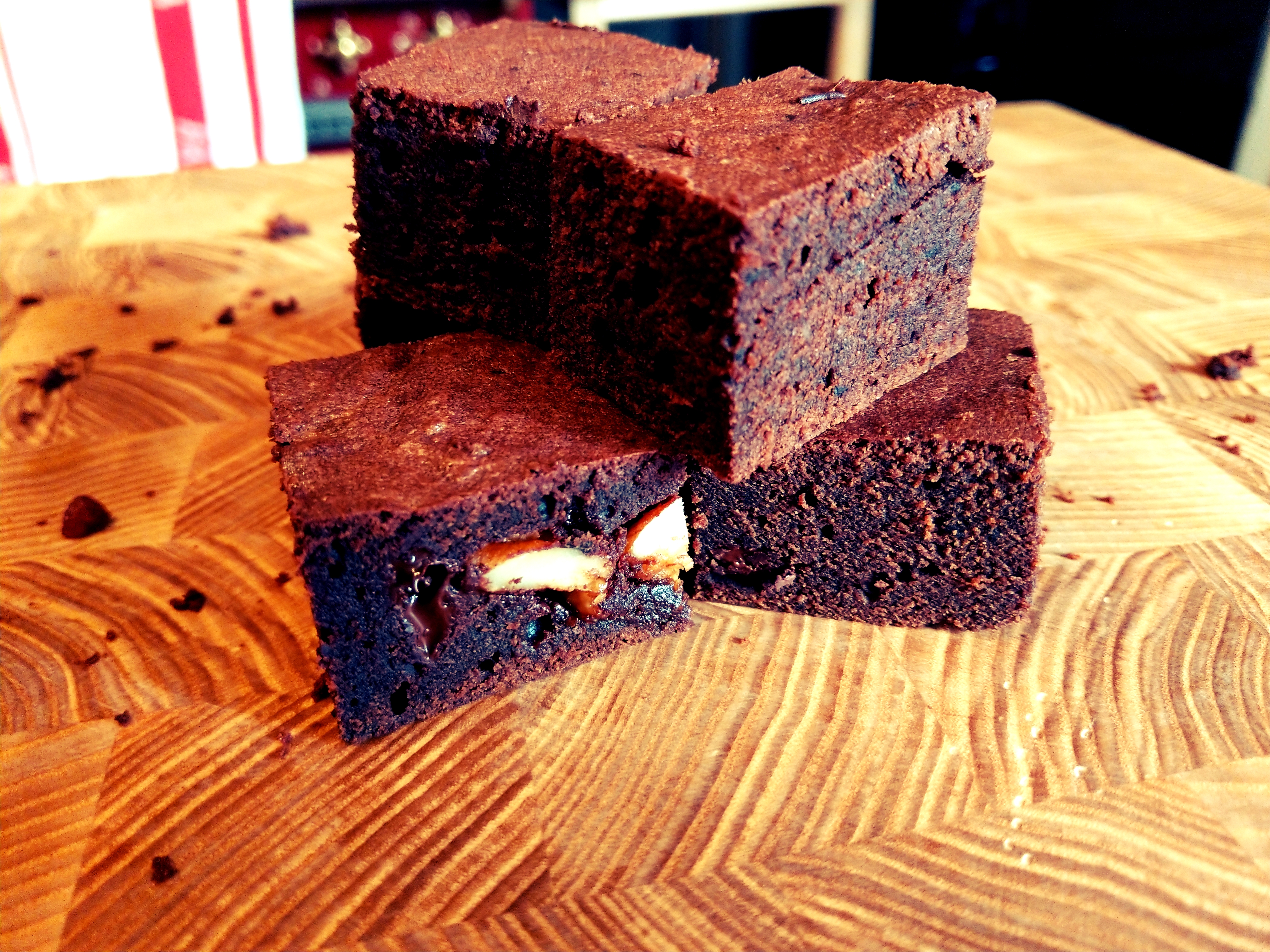 Aufgrund meiner .. sagen wir mal: Disposition ist es mir nicht möglich, selbstständig Rezepte zu entwickeln. Ich muss also – wie auch das Rezept für den fantastischen Bagels & Beans Cheesecake – schamlos stehlen. Als Daniel, der Mann von Julia von Naschen Mit Der Erdbeerqueen, auf einer Herren-Landpartie ein Blech Brownies mitbrachte, die allseits als mit das beste gelobt wurden, was je aus dieser Gebäckkategorie entstanden ward, stand mein Entschluss sofort fest: Take, and never give back. Mit von dero Gnaden freundlichen Genehmigung jetzt auch in Ihrem Wohnzimmer: