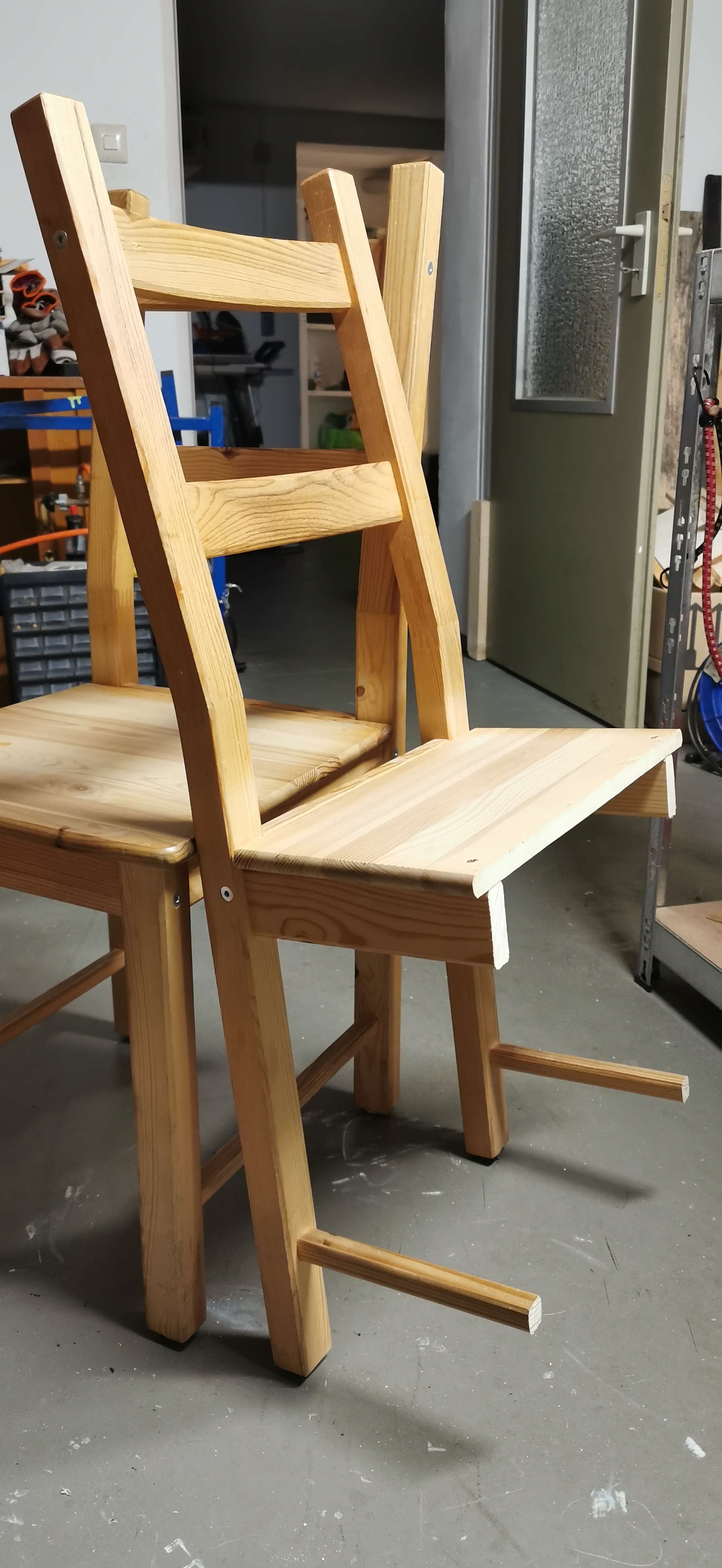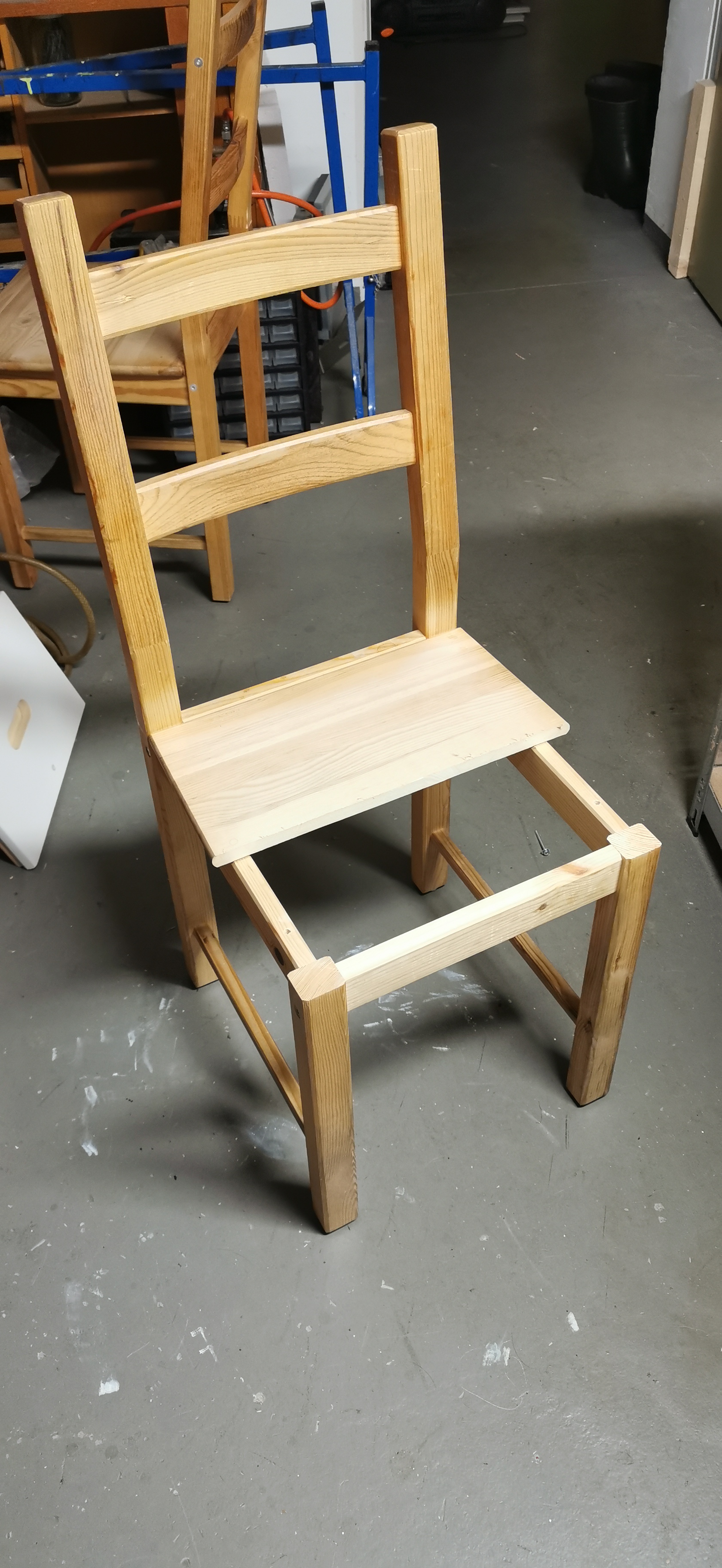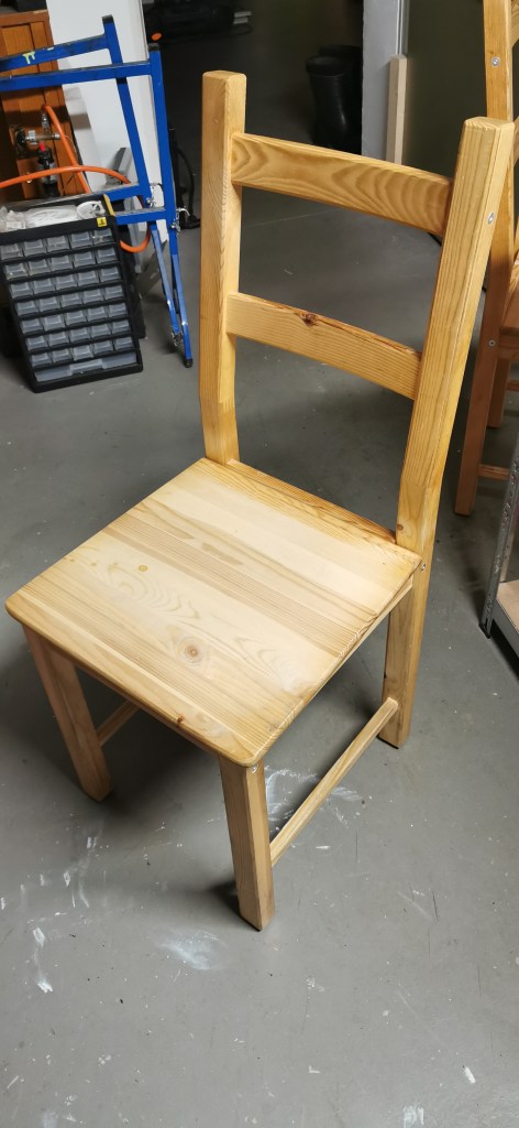 Irgendwie so habe ich den Anfang von Grimms Märchen (oder der Bibel?) in Erinnerung. Kann auch ganz anders gewesen sein. Diesen Stuhl habe ich für einen schlanken Kurs (umsonst.) bei eBay Kleinanzeigen bekommen. Langweilig, Weichholz, Sitzmöbel.